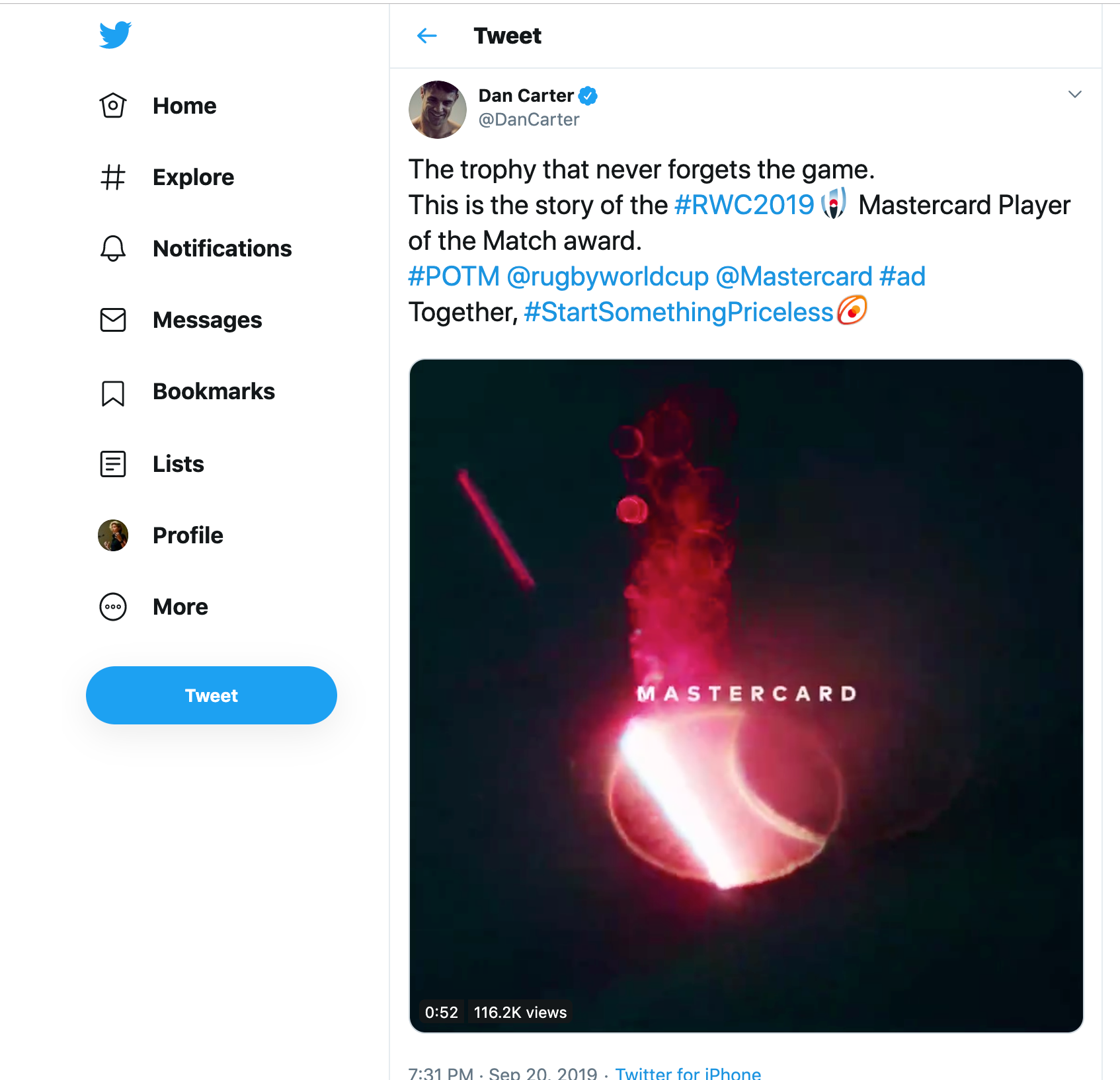 Rushed directly to the sideline in just moments, it’s then presented by a Mastercard competition winners, customers or brand ambassadors; including rugby great Dan Carter and Japanese tennis hero Naomi Osaka, to the game’s most exceptional player to a global TV audience of millions.